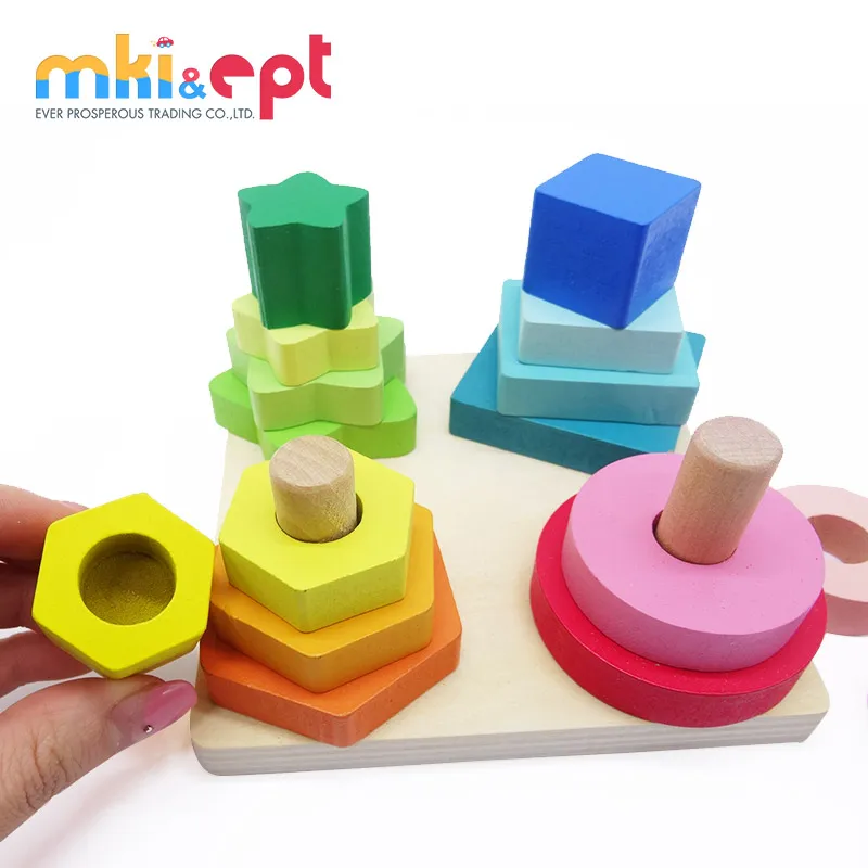 EPT Wooden Shapes Sorter Toys Kids Montessori Early Education Block Wood Toys for 36 Months Baby